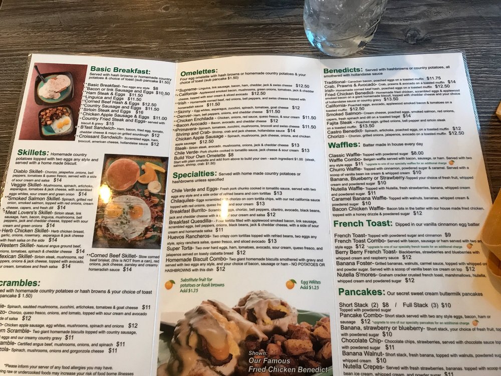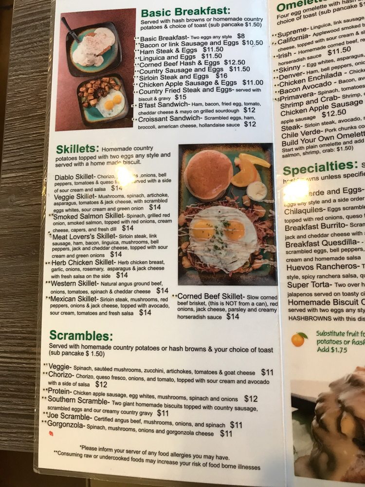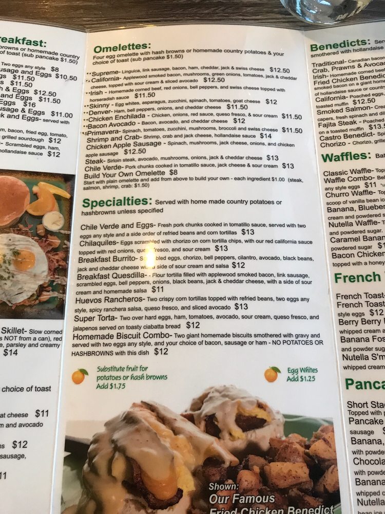 "Egg whites, asparagus, zucchini, spinach, tomatoes, goat cheese (choose fruit or potatoes).